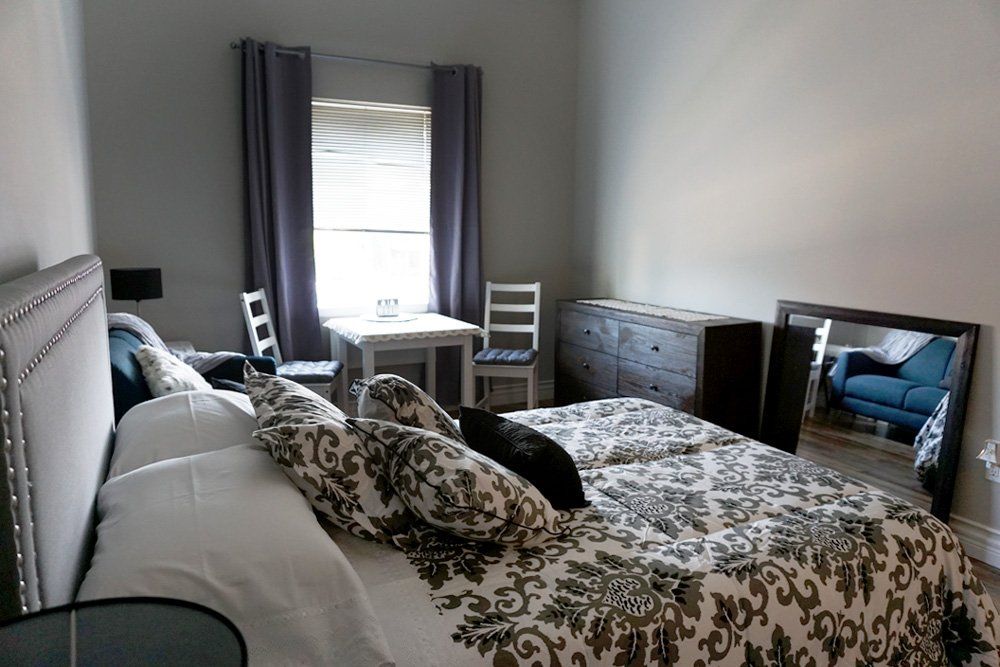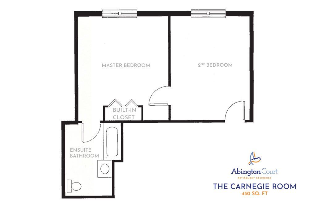 The Carnegie Room is a 450 sq. ft. private suite. Offering separate bedroom and living room, this suite creates a full apartment feel.